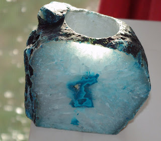 The Cat’s Meow Bonanzle Booth is…well….the cat’s meow, as the saying goes. A collection of beautiful and unique items. Like this unique agate candle holder: