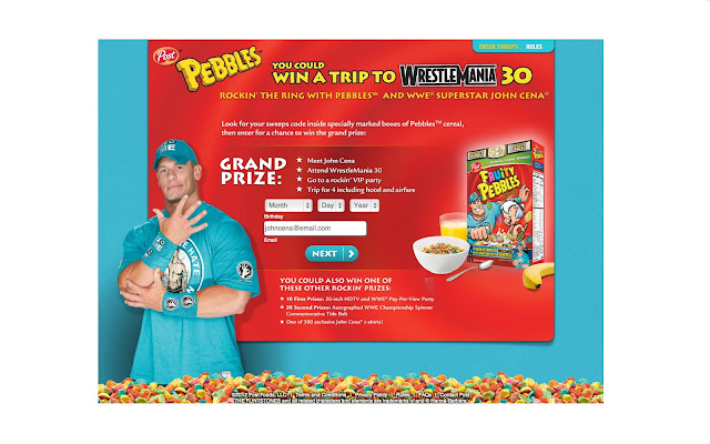 You can participate in the sweepstakes by visiting www.PebblesMania.com and entering a unique code found on participating boxes of Pebbles cereal.