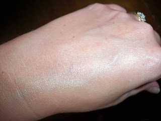 So then it was my turn. The Shimmering lotion felt wonderful on my back. It did not leave my skin feeling oily. Instead my skin felt quenched. The tropical sent of Copa Cabana was pleasant and lingered on my skin. I applied some to my hand so you could see the subtle shimmer the Shimmering lotion leaves.