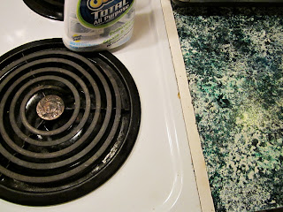 I decided to try the kitchen cleaner from Soft Scrub on my stove. It was definitely a bit grimey. I was kind of obsesses with the foaming action so I used that on the stove as well.